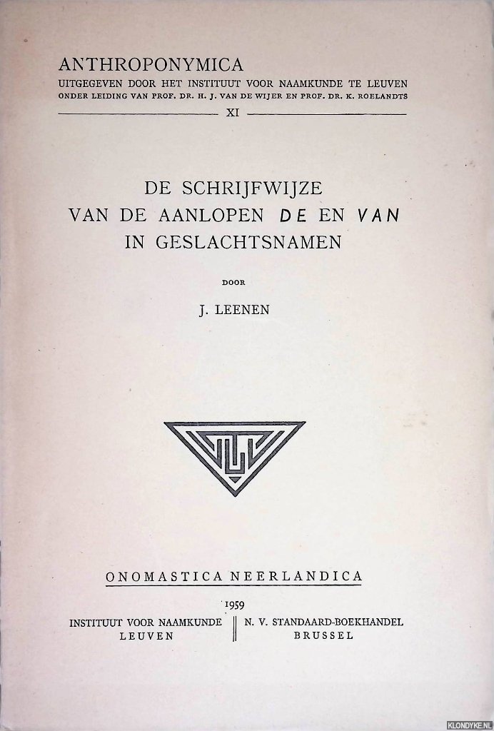 Uitgeverij | Leuven : Instituut voor Naamkunde |