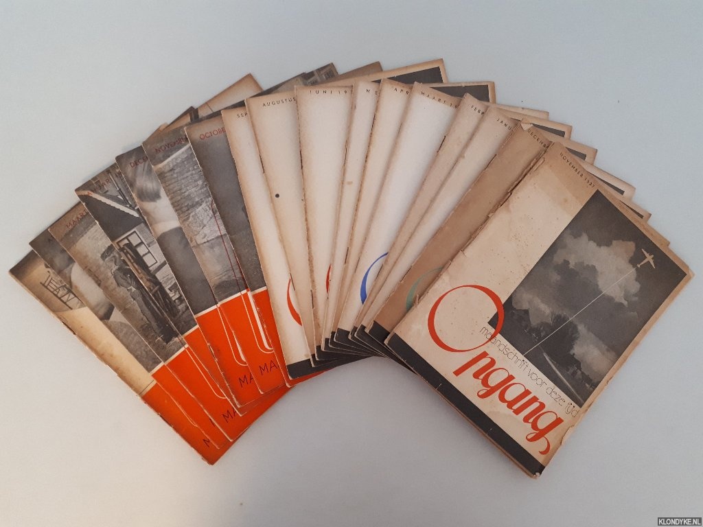 Beschrijving | 17 afleveringen uit de eerste en tweede jaargang van het periodiek Opgang: oorspronkelijke geniete omslagen, softcovers, illustraties in z/.w, klein 4to. Het gaat om de volgende afleveringen: 1) Eerste jaargang (1937-1938): nummer 2, 3, 4, 5, 6, 7, 8, 9, 11, 12; 2) Tweede jaargang (1938-1939): nummer 1, 2, 3, 4, 6, 7, 9. |