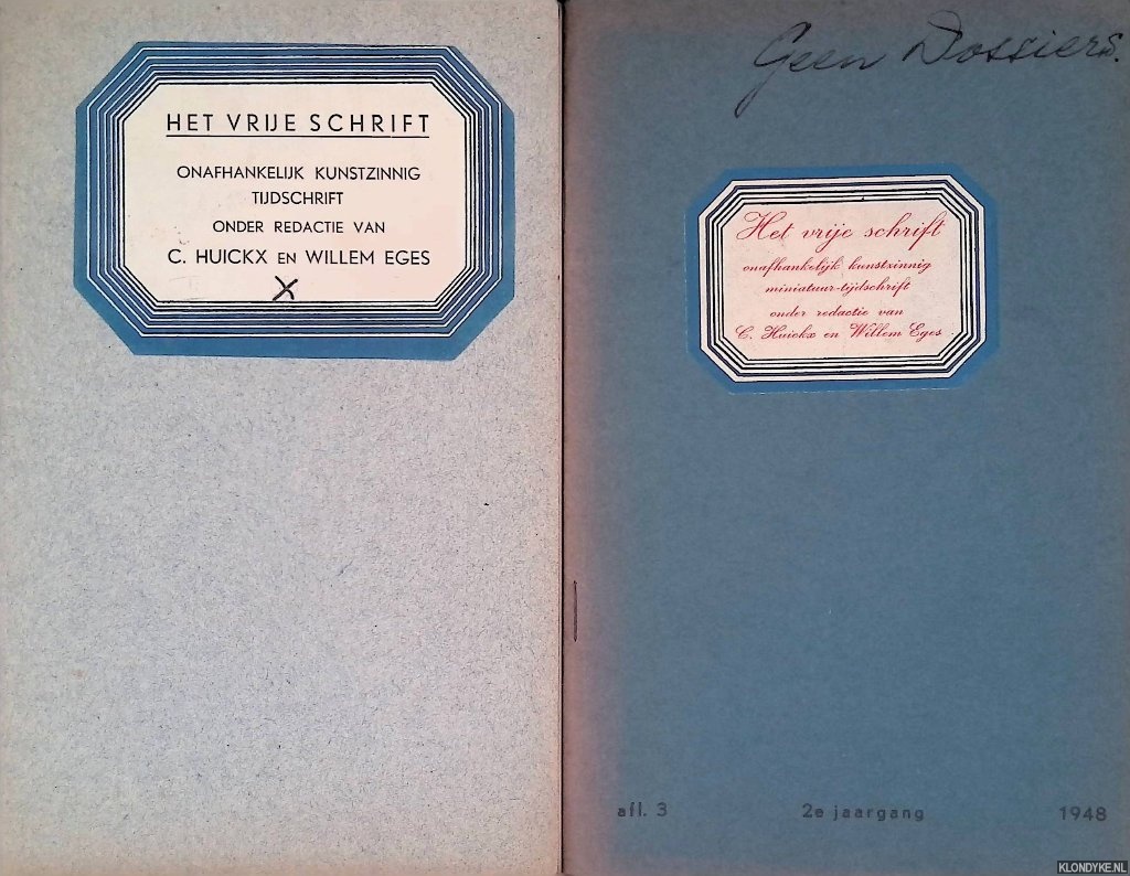 Het vrije Schrift: Onafhankelijk kunstzinnig tijdschrift (2 afleveringen)