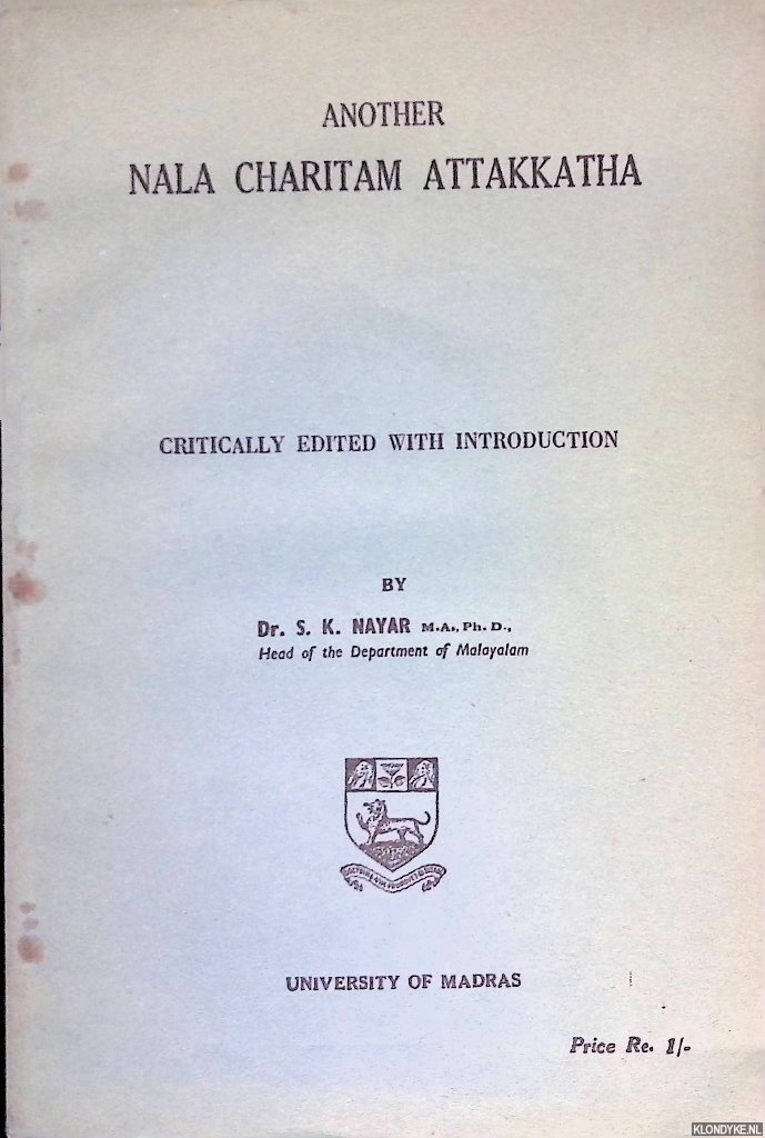 Beschrijving | Paperback, VI,52 pages, 8vo. Foreword in English. "Based on two paper manuscripts supplied to me by the kind courtesy of my friend Sri O.M. Anujan, Assistant Professor of Malayalam, Presidence Collegem Madras, who obtained them from two sources." |
