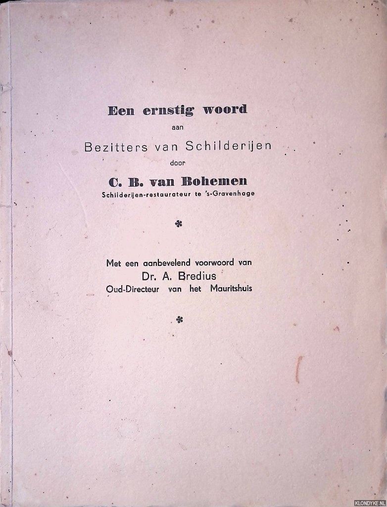 Een ernstig woord aan Bezitters van Schilderijen