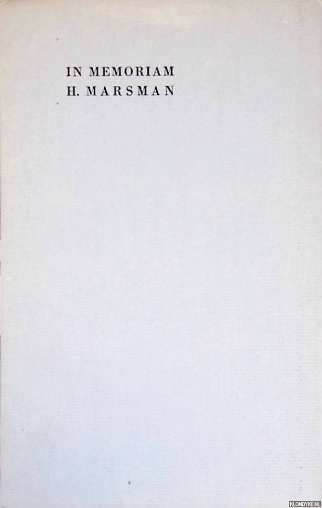In Memoriam H. Marsman: overleden 17 juli 1940
