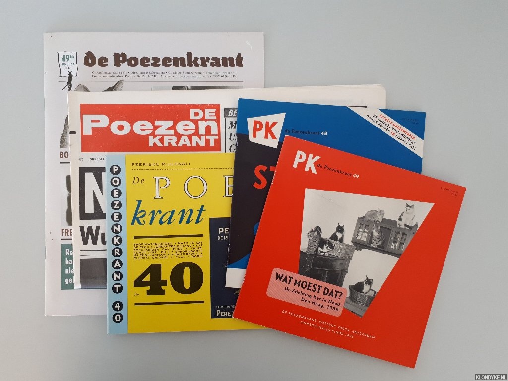 Beschrijving | 5 afleveringen van de onregelmarig verschijnende Poezenkrant in verschillende formaten, 1989-2011. Het betreft de afleveringen: 40, 48, 49, 49bis en 55. |