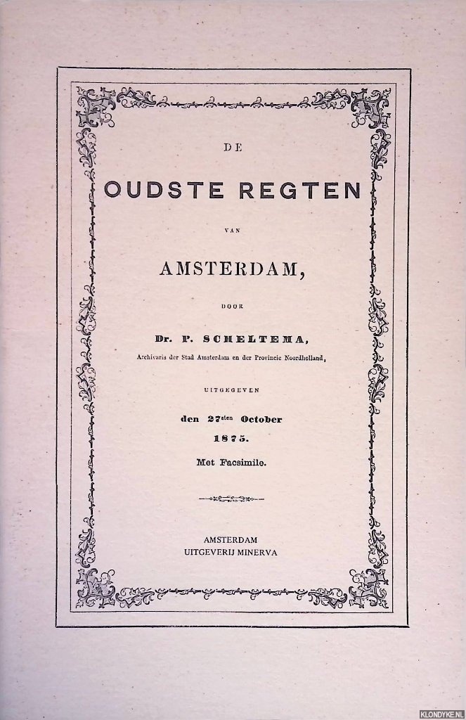 De oudste regten van Amsterdam: uitgegeven den 27sten October 1875