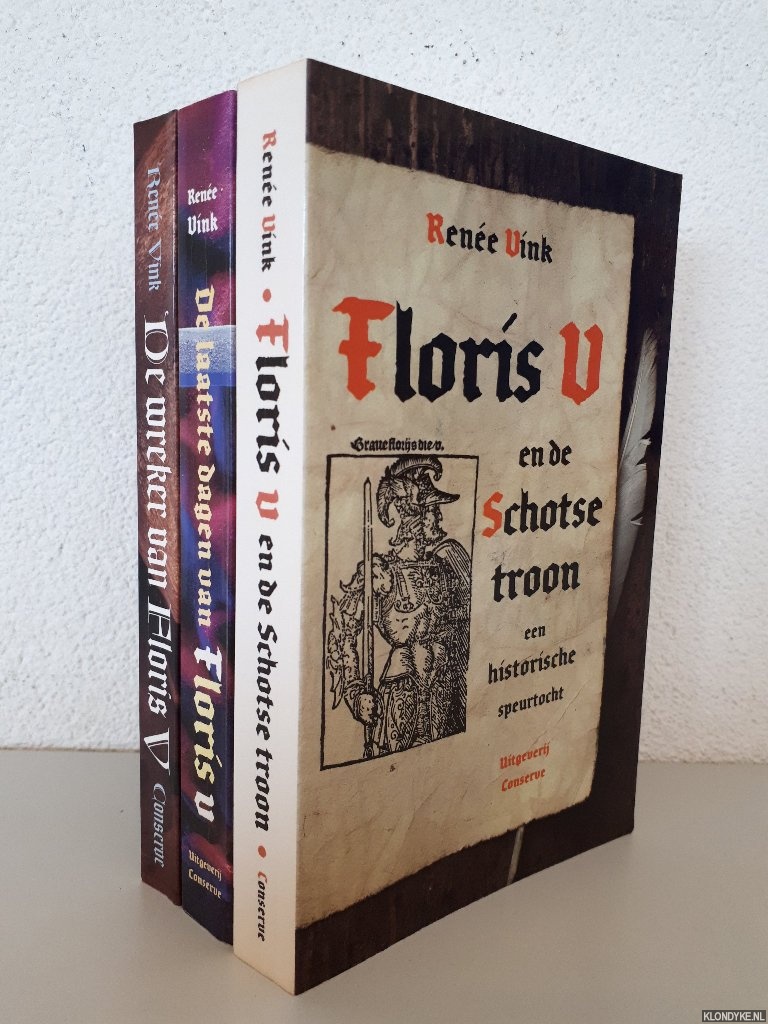 Beschrijving | 3 uniforme paperbacks, 258+246+203 pagina's, 8vo. 1) Floris V en de Schotse troon: een historische speurtocht (ISBN 9789054290513); 2) De laatste dagen van Floris V: een middeleeuws moordverhaal (ISBN 9789054290582); 3) De wreker van Floris V: een middeleeuws raadsel (ISBN 9789054290902). |