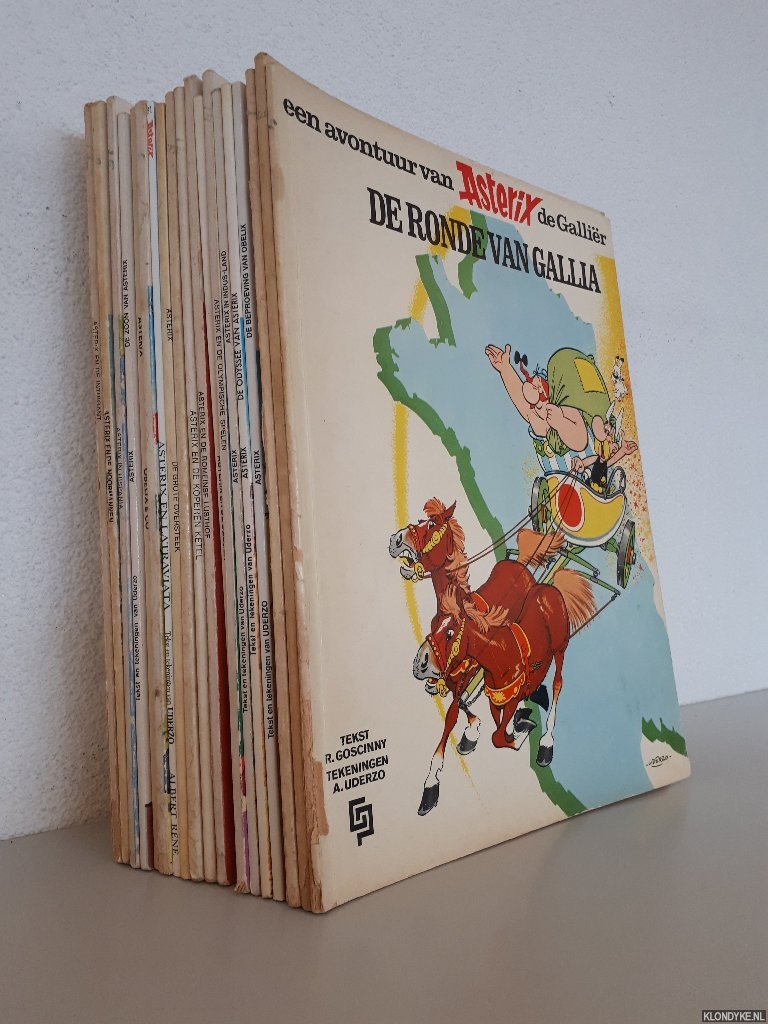 Beschrijving | 20 albums van Asterix (19 paperbacks en 1 geniete uitgave), strips in kleur, verschillende jaren van uitgifte, herdrukken, 4to. Het gaat om de volgende albums: 1) De ronde van Gallia; 2) Adterix en de Gothen; 3) Asterix de Galliër; 4) Asterix verovert Rome; 5) De beproeving van Obelix; 6) De odyssee van Asterix; 7) Asterix in Indus-Land; 8) Asterix en de olympische spelen; 9) Asterix en de Belgen; 10) Asterix en de Romeinse Lusthof; 11) Asterix en de koperen ketel; 12) Asterix en de gladiatoren; 13) De grote oversteek; 14) Asterix en Latraviata; 15) De kampioen; 16) Obeliz & Co.; 17) De zoon van Asterix; 18) Asterix in Hispania; 19) Asterix en de Noormannen; 20) Asteric en de intrigant. |
