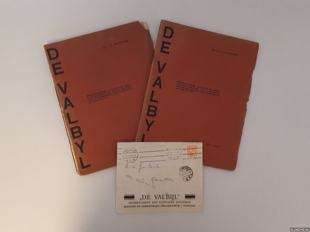 Beschrijving | 2 (van 3) uniforme geniete afleveringen met oorspronkelijke omslagen van dit periodiek, doorlopende paginering, klein 4to. Het gaat om de 1e jaargang nummer 1 en 2 (van in totaal 3 verschenen nummers). Op voorplatten: De Valbyl. Bijgevoegd: Sirkulaire in gefrankeerde en geadresseerde envelop van "De Valbijl". |