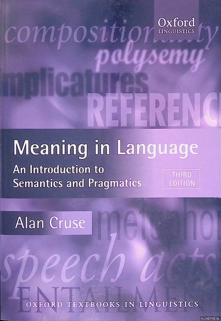 Samenvatting | A comprehensive introduction to the ways in which meaning is conveyed in language. Alan Cruse covers semantic matters, but also deals with topics that are usually considered to fall under pragmatics. A major aim is to highlight the richness and subtlety of meaning phenomena, rather than to expound any particular theory. |