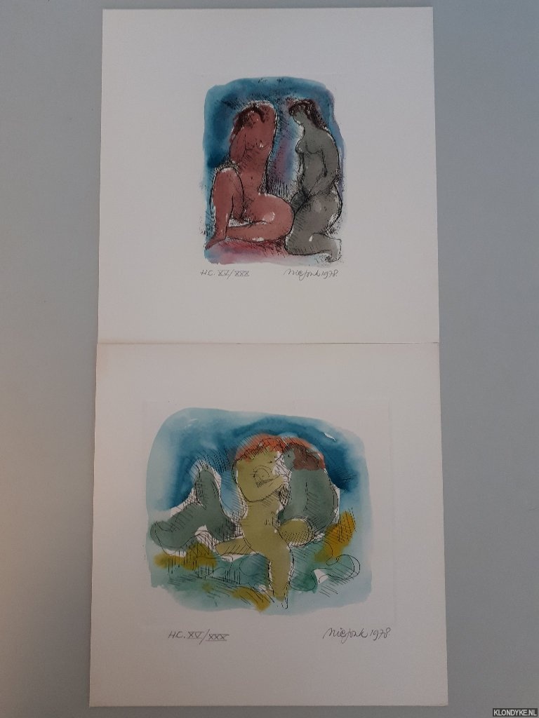 Beschrijving | Originele blauwe linnen band, stofomslag, geïllustreerd met (paginagrote) foto's in z/w, vierkant (circa 29x29cm). Genummerde editie. Dit is nummer HC/XV. Gesigneerd door Nic Jonk. Inclusief 2 genummerde en gesigneerde etsen. |