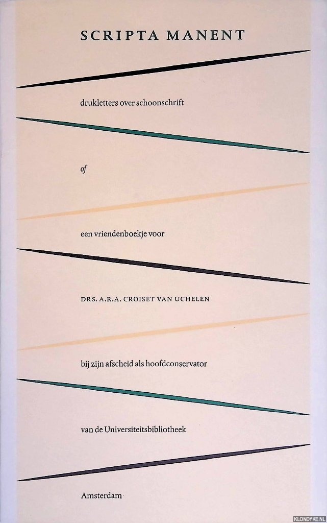 Scripta manent: drukletters over schoonschrift of een vriendenboekje van collega's aangeboden aan drs. A.R.A. Croiset van Uchelen bij zijn afscheid als hoofdconservator van de Universiteitsbibliotheek Amsterdam