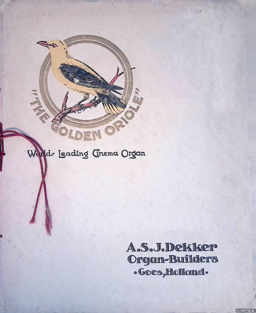 Beschrijving | Original gilt lettered and decorated string bound wrappers, softcover, illustrated with numerous photographs in b/w, 3 flyers about 1) Style 21, 2) Style 23 and 3) Style 25 Unit Cinema Organs in pocket in rear, printed by Hofdrukkerijen Arps & Zoon Rotterdam, 4to. On front cover: A.S.J. Dekker Organ-Builders |