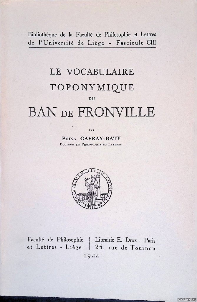 Uitgeverij | Paris/Liége : Faculté de Philosophie et Lettres/Librairie E. Droz, |