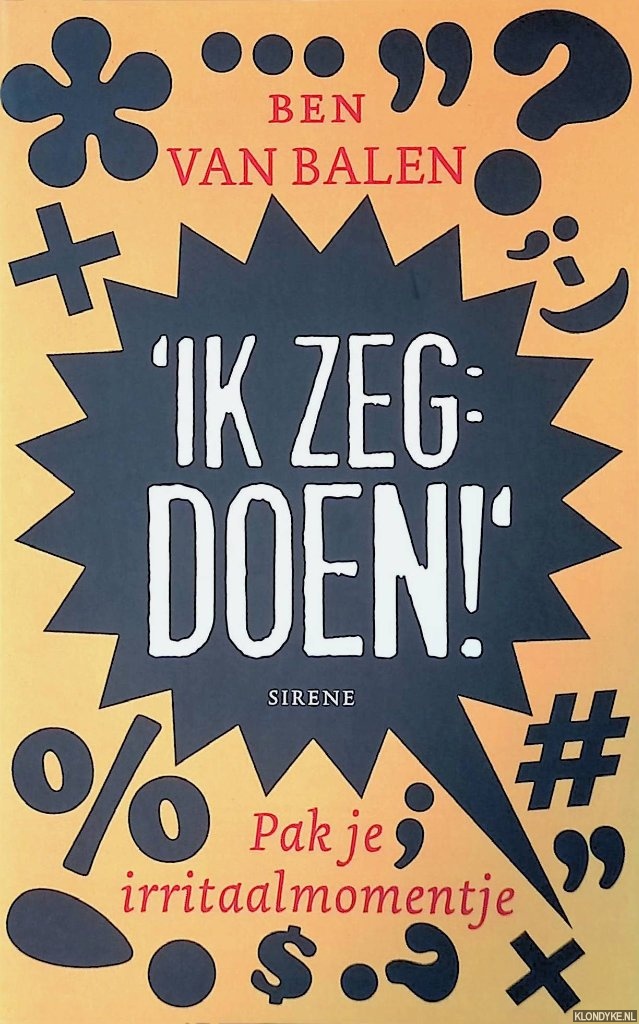 Samenvatting | Summary: Je ergeren aan taal, en dan vooral aan het taalgebruik van anderen. Menig taalliefhebber heeft daar last van. De kunst is hoe je daar mee omgaat. Taalirritaties hoeven geen verzuring te brengen, ze luchten ook op. Ben van Balen, bedenker van de populaire weblog www. irritaal. nl, heeft klagen over irritant taalgebruik tot een kunstvorm verheven. Na het succes van zijn eerste boek "Irritaal", waarin hij zijn ergernissen over irritant taalgebruik heeft beschreven, kon een vervolg natuurlijk niet uitblijven. In "Ik zeg: doen!" schrijft hij wederom met humor en sarcasme over de irritantste taalkronkels die hij tegenkomt. Dus pak je momentje en ontdek dat irritaal zo ontzettend 2010 is. |
