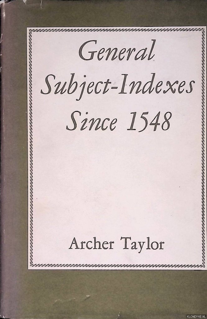 General Subject-Indexes Since 1548 (Publications of the A. S. W. Rosenbach Fe-,